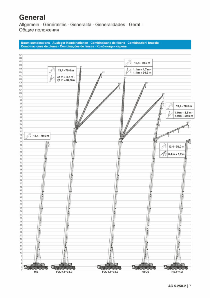 Завдяки високій вантажопідйомності та довжині стріли, AC 5.250-2 ідеально підходить для монтажу баштових кранів, будівництва мостів та інших інфраструктурних проектів. Його компактні габарити та маневреність дозволяють ефективно працювати в умовах обмеженого простору.